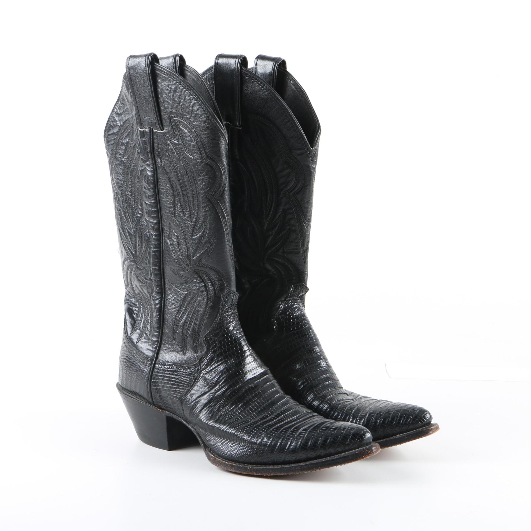Women's Justin Embossed Black Leather Cowboy Boots EBTH